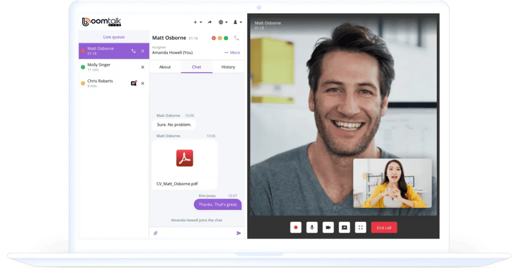 Unlike platforms that only support video visits, BoomTalk™ Live supports entire business communication workflows across multiple industries, integrating chat, video, collaboration and AI.